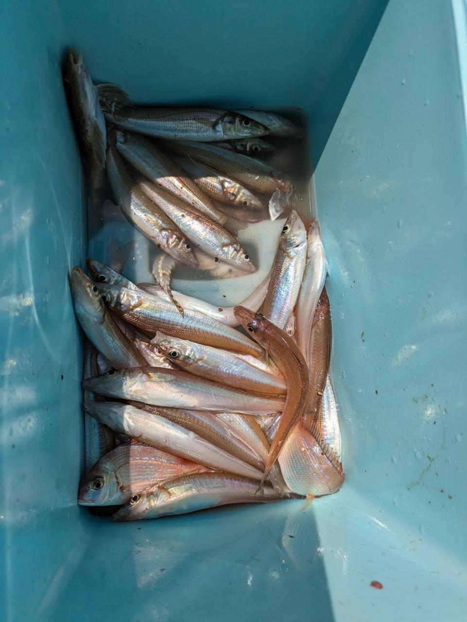 餌が弱めだったのでじっくり流しました。アタリは少なめで全員ゲットなりませんでした。水色よくなってきたので今後も楽しみです。