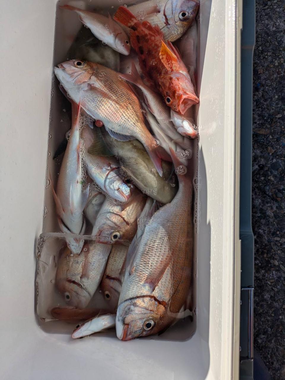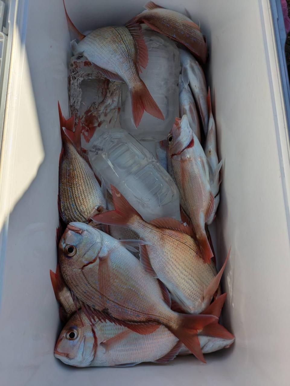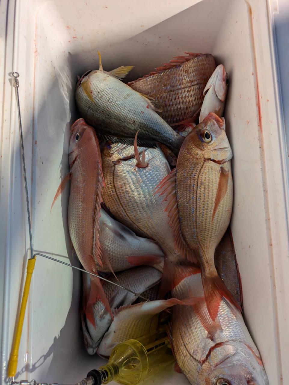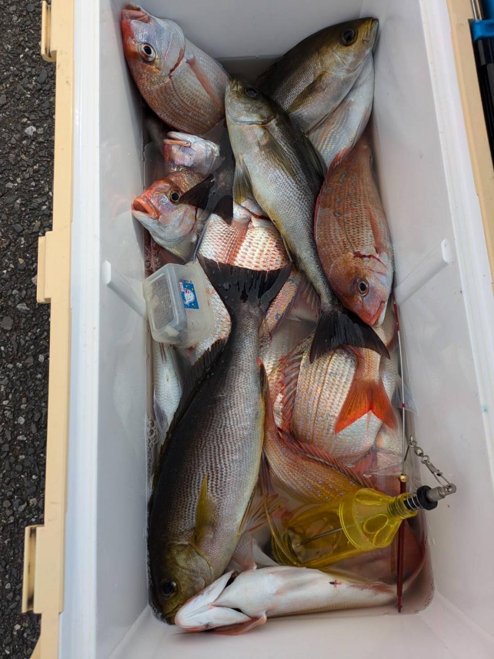 ごちゃごちゃの海で船酔いの方も多くなってしまい、全員ゲットなりませんでした。凪良くなれば数もアタリも増えてくると思います。