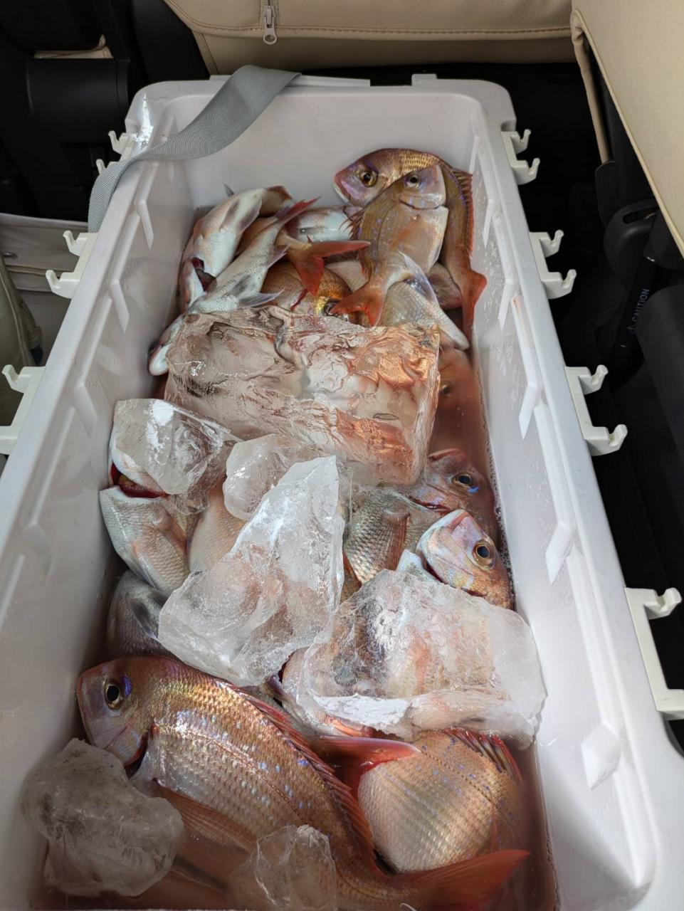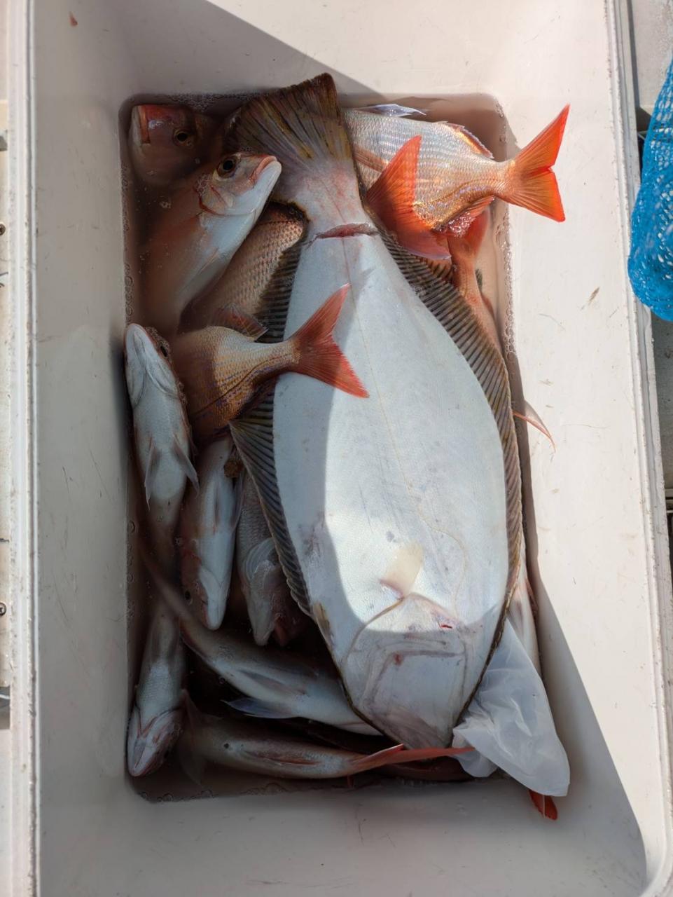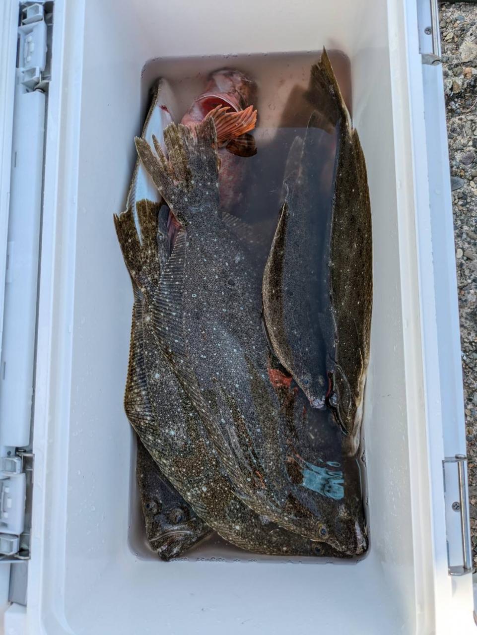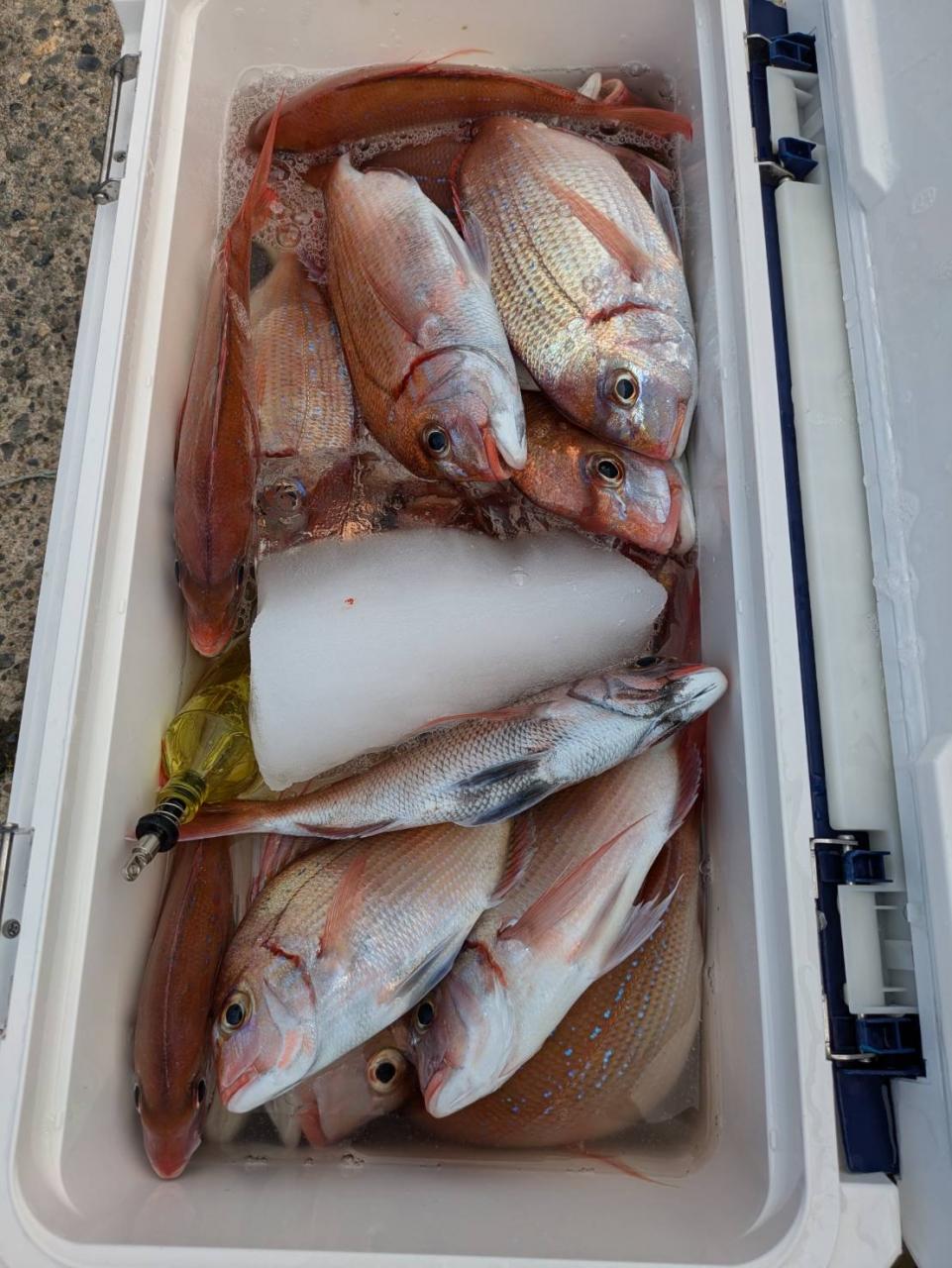 ごちゃごちゃの海で船酔いの方も多くなってしまい、全員ゲットなりませんでした。凪良くなれば数もアタリも増えてくると思います。
