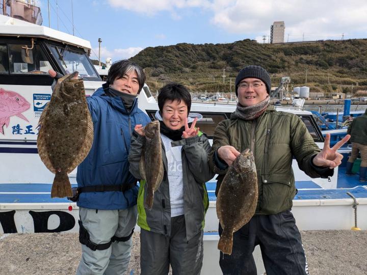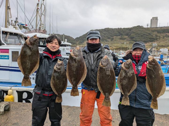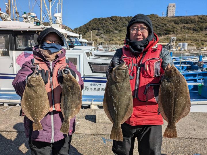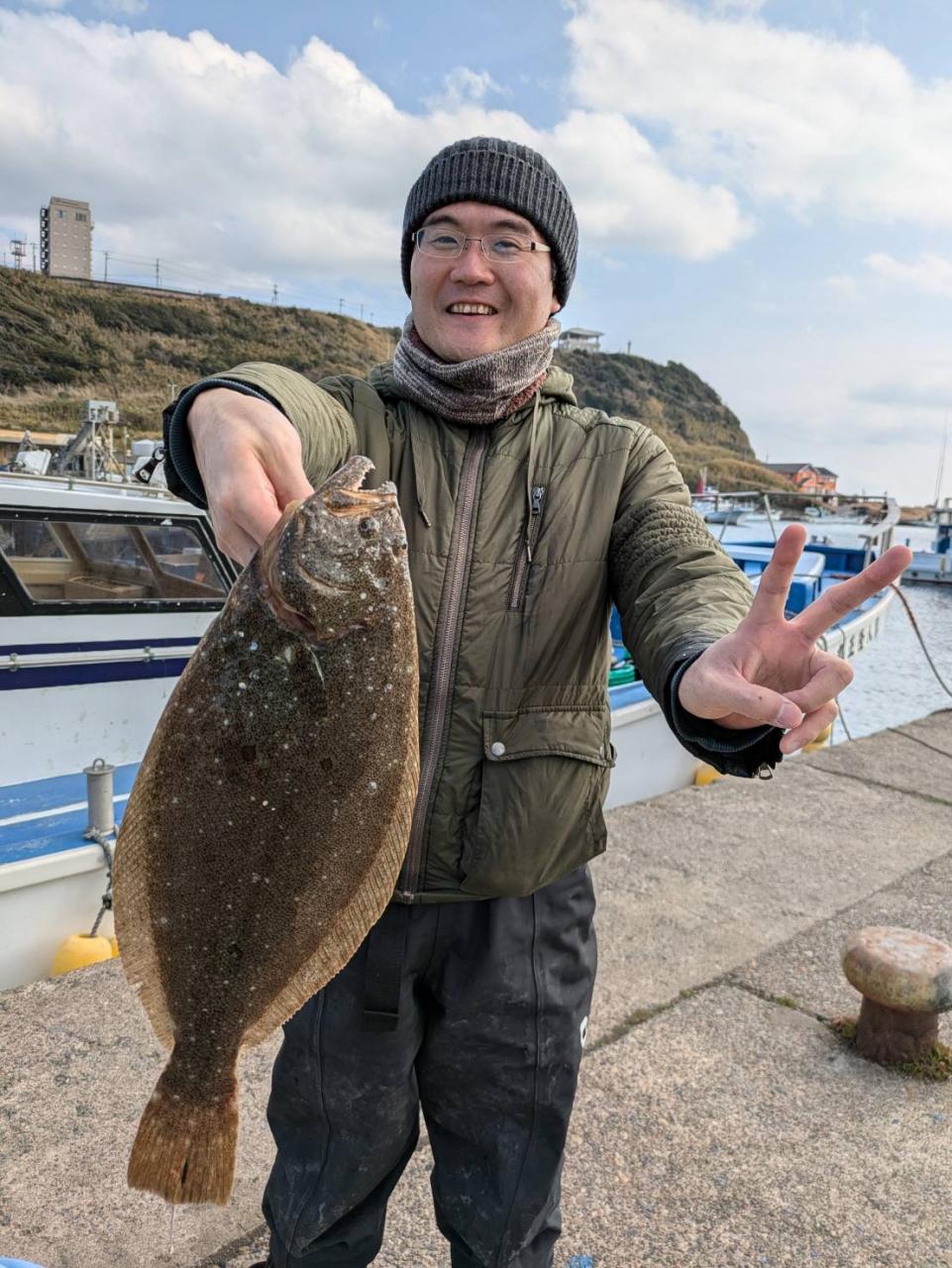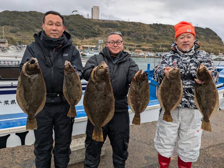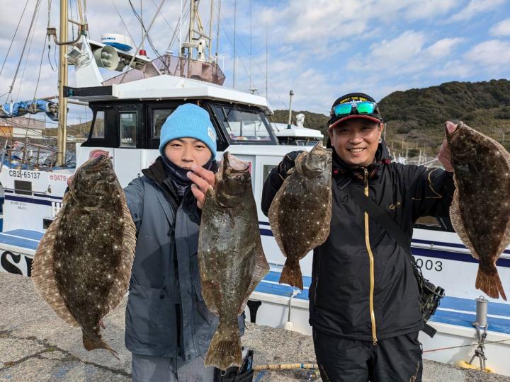 朝のうちダメでしたが次第にアタリ増えポツポツ当たりました。オデコは3隻で2名でした。ヒラメサイズ多く今後も楽しめそうです。