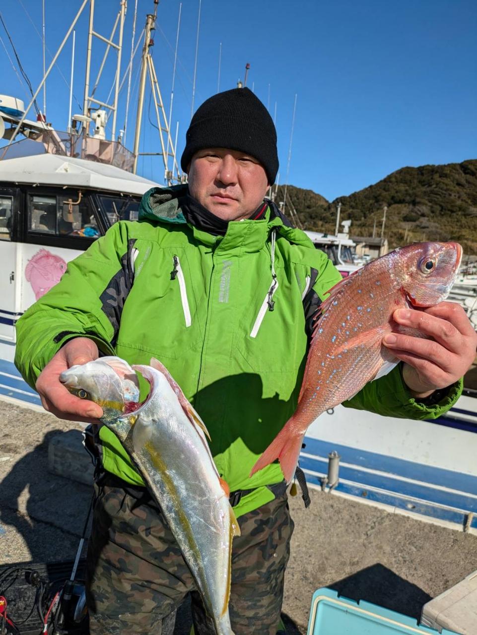 シケ後で潮が濁り、なかなか良いポイント当たらなかったが、どうにか転々とやり全員ゲットで良かったです❗️